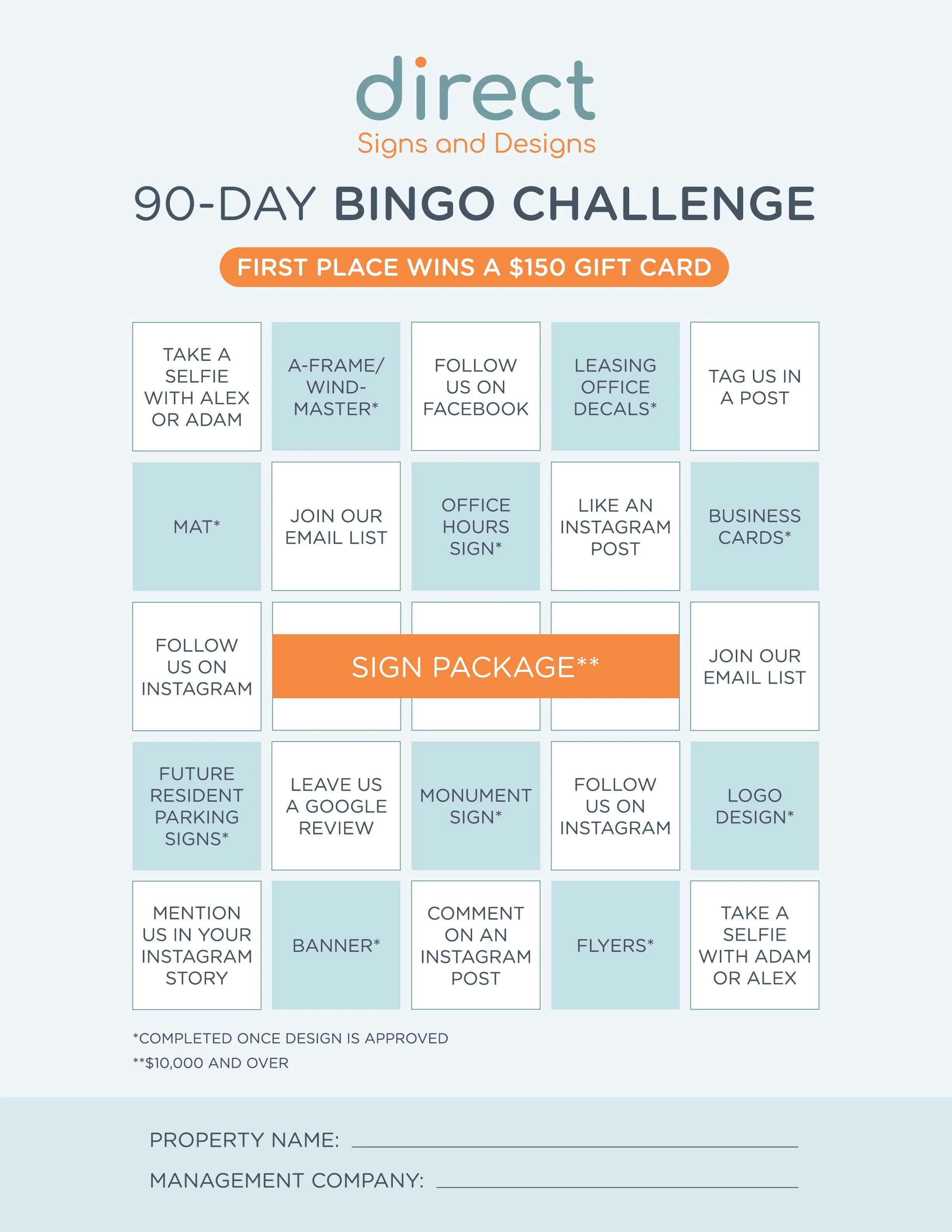 Download your bingo card, fill out on your computer, save and email back to info@directsd.com for a chance to win! 1st place gets a $150 gift card, 2nd wins a $100 gift card, and 3rd takes home a $50 gift card.